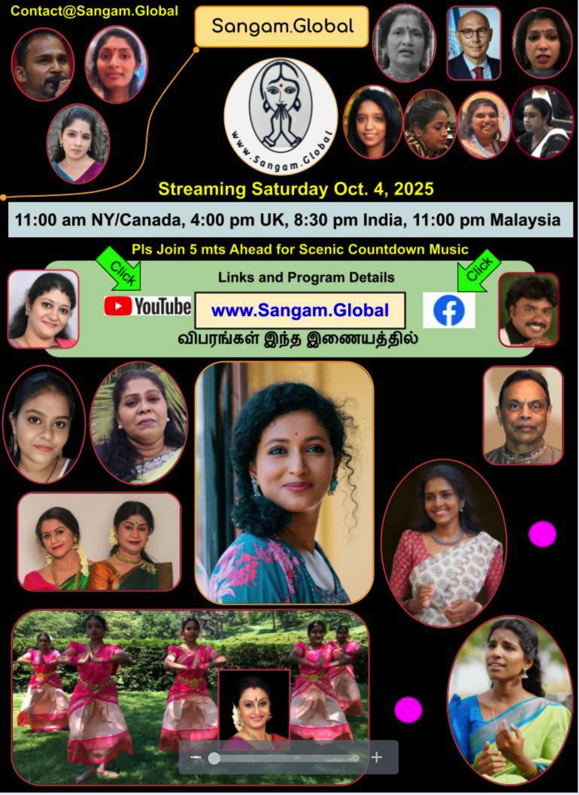 Sangam Global Live | Saturday October 4, 2025 | 11.00 am NY-Canada, 4.00 pm UK, 9.30 pm Tamil Nadu/Eelam and 11 pm in Malaysia 3