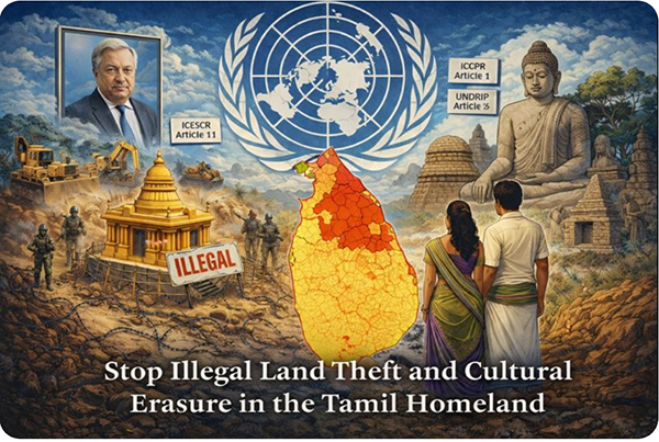 විෂය: උතුරු–නැගෙනහිර දෙමළ භූමියේ සිදු වන නීතිවිරෝධී සංස්කෘතික විනාශය සහ ඉඩම් අත්පත් කර ගැනීම – ජාත්යන්තර නීතිය අනුමත කිරීම